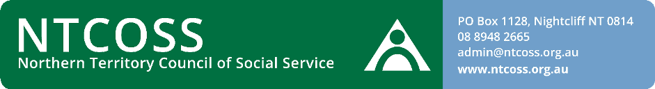 The Northern Territory Council of Social Service (NTCOSS) welcomes the opportunity to contribute to