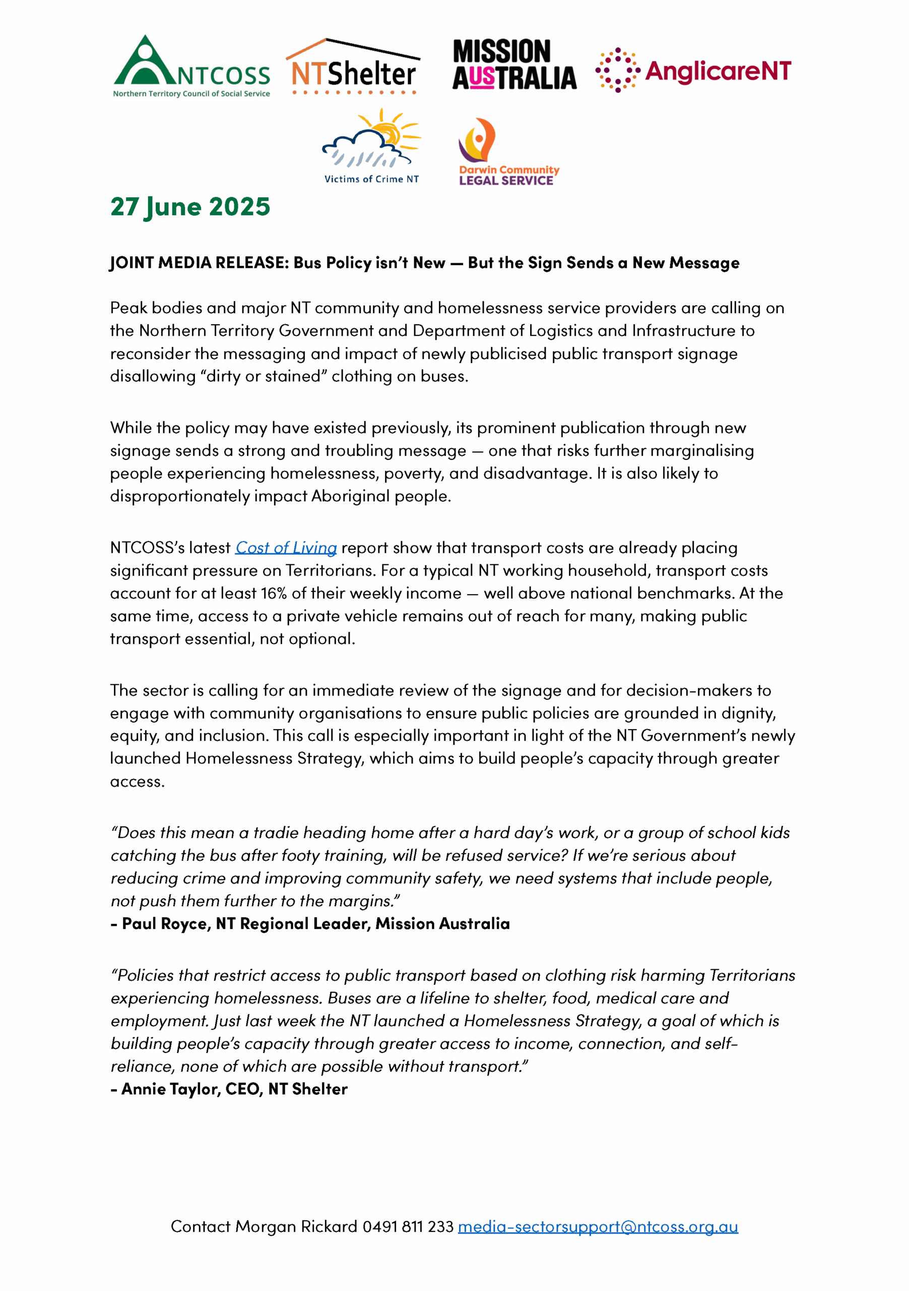 JOINT MEDIA RELEASE: Bus Policy isn’t New — But the Sign Sends a New Message27/06/25DOWNLOAD THE MEDIA RELEASE