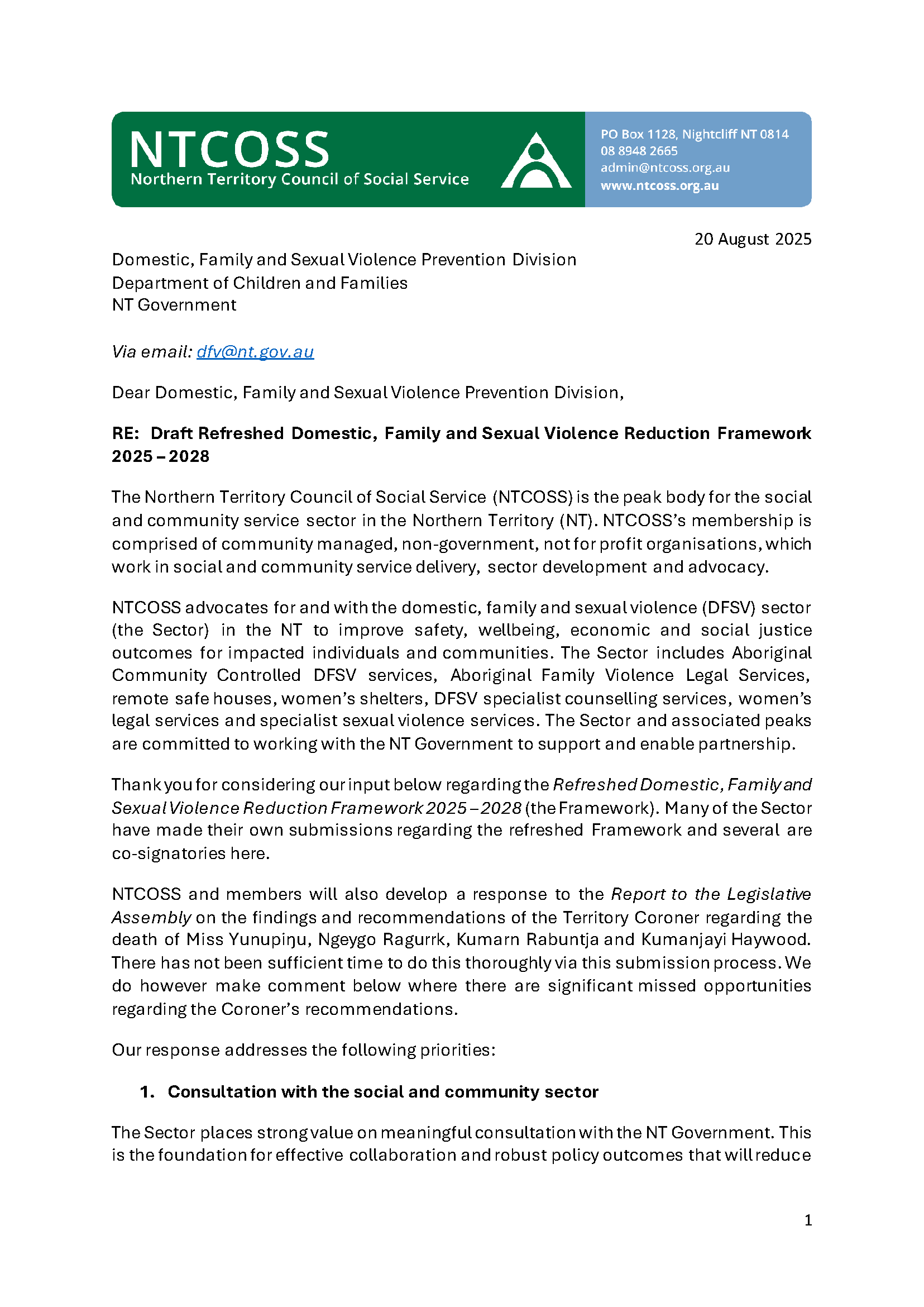 Joint Submission on the Domestic, Family & Sexual Violence (DFSV) Prevention & Response Roadmap 2025-202820/08/25DOWNLOAD THE SUBMISSION